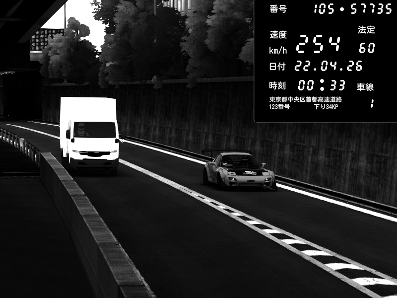 | 2026/04/22 00:35 | C1外回り 芝公園 | 227 / 60 km/h | Mazda RX-7 FD3S FEED Afflux GT3 | CAPTURE |