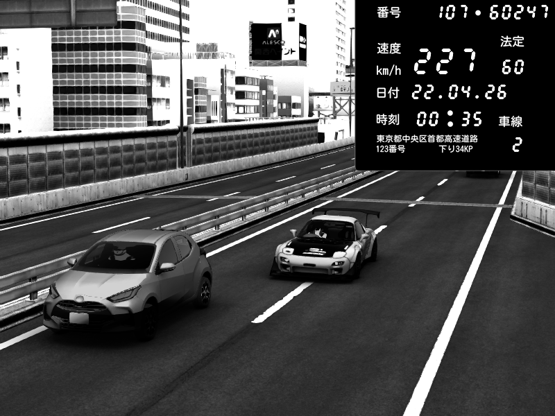 | 2026/04/22 00:20 | C1外回り 新富町 | 148 / 60 km/h | Mazda RX-7 FD3S FEED Afflux GT3 | CAPTURE |