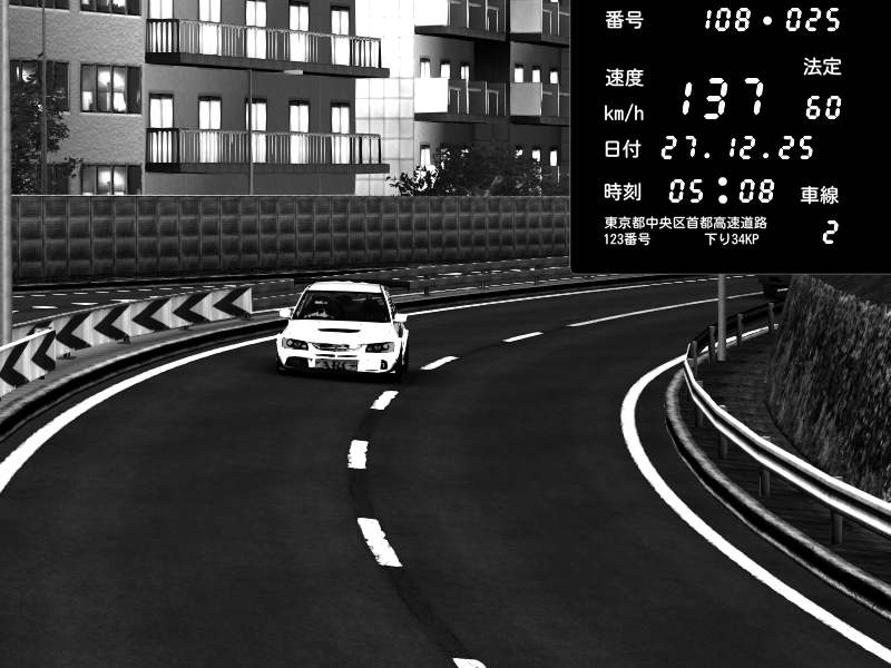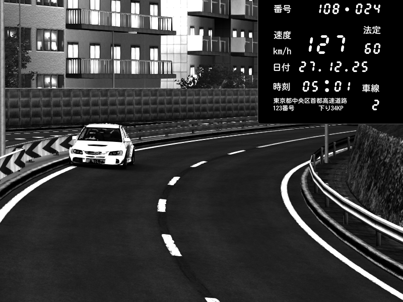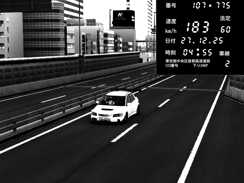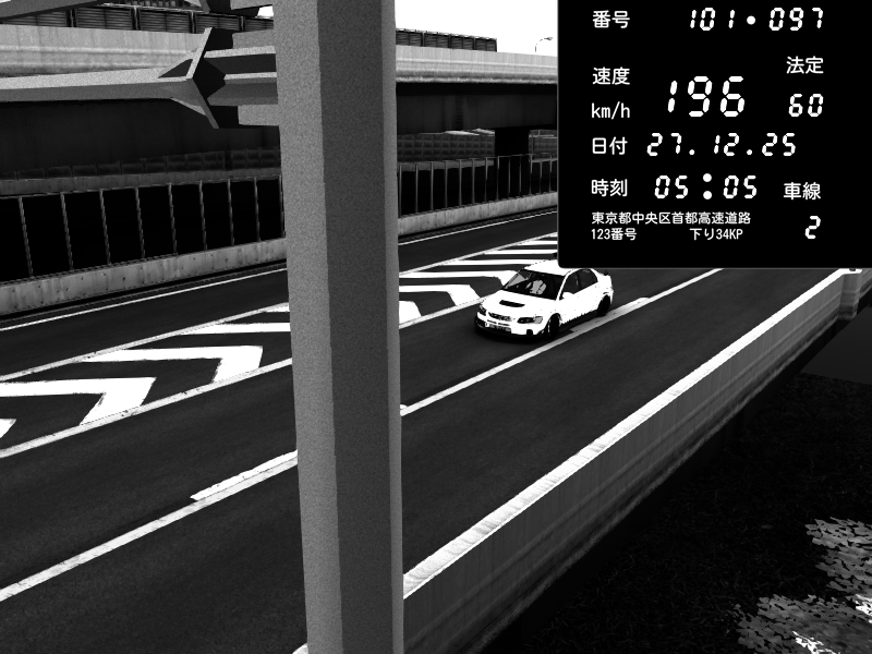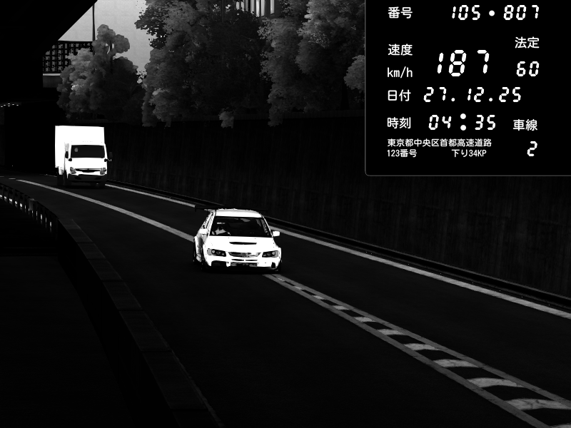 | 2025/12/27 05:01 | 4号下り 代々木 | 127 / 60 km/h | Mitsubishi Lancer Evolution V Wangan Spec | CAPTURE |