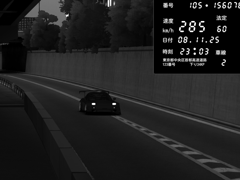 | 2025/11/08 23:19 | C1外回り 京橋 | 269 / 60 km/h | Mazda RX-7 FD3S FEED Afflux GT3 | CAPTURE |