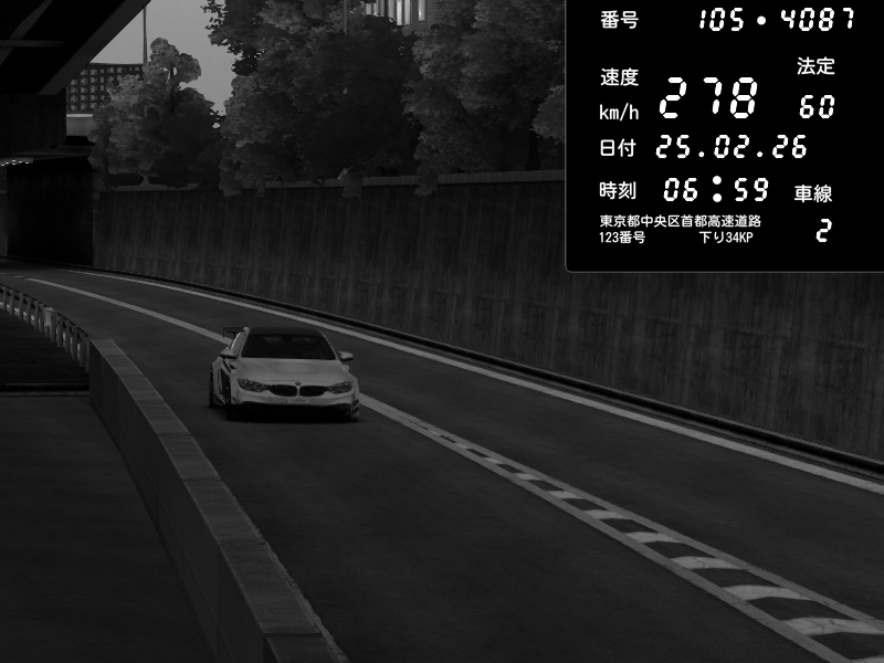 | 2026/02/25 06:59 | C1外回り 京橋 | 278 / 60 km/h | BMW M4 crash.Sp Varis Widebody | CAPTURE |