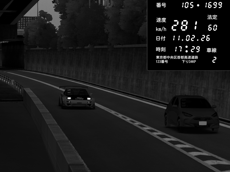 | 2026/02/11 17:29 | C1外回り 京橋 | 281 / 60 km/h | Mazda RX-7 FD3S FEED Afflux GT3 | CAPTURE |