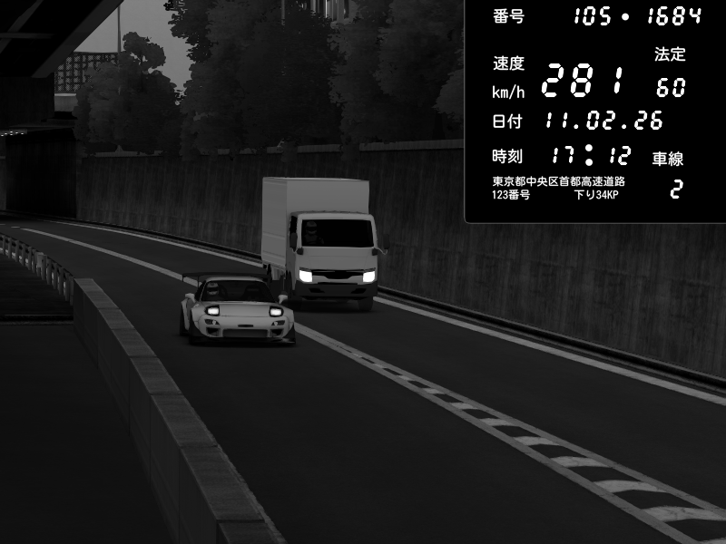 | 2026/02/11 17:12 | C1外回り 京橋 | 281 / 60 km/h | Mazda RX-7 FD3S FEED Afflux GT3 | CAPTURE |