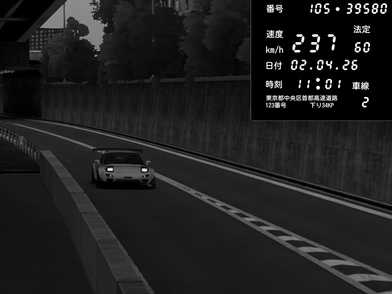 | 2026/01/24 08:15 | C1内回り 竹橋JCT | 106 / 60 km/h | Mazda RX-7 FD3S FEED Afflux GT3 | CAPTURE |