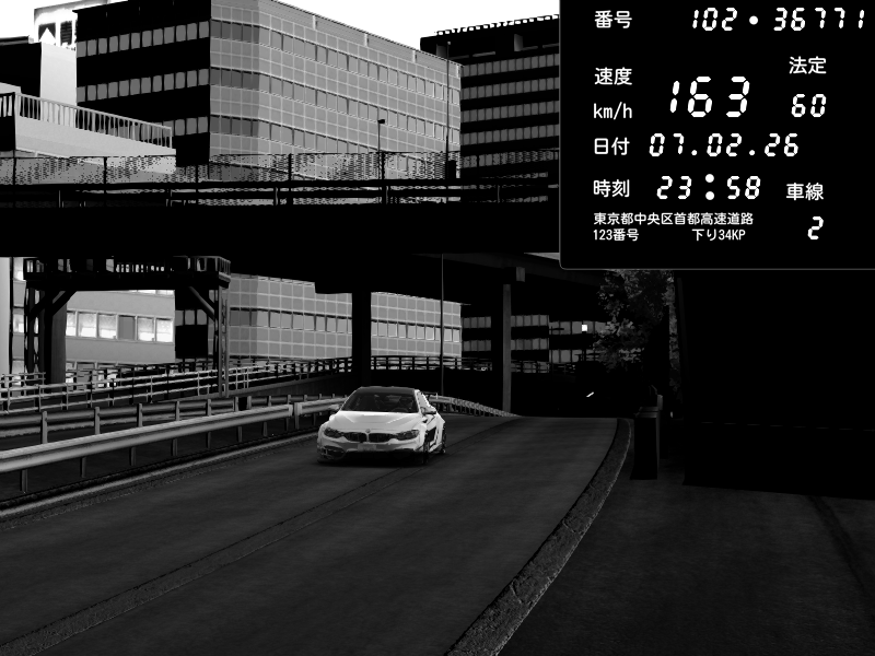 | 2026/02/07 23:58 | C1外回り 新富町 | 163 / 60 km/h | BMW M4 crash.Sp Varis Widebody | CAPTURE |