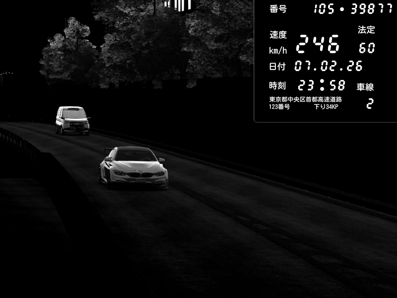 | 2026/02/08 00:27 | C1外回り 芝公園 | 186 / 60 km/h | BMW M4 crash.Sp Varis Widebody | CAPTURE |