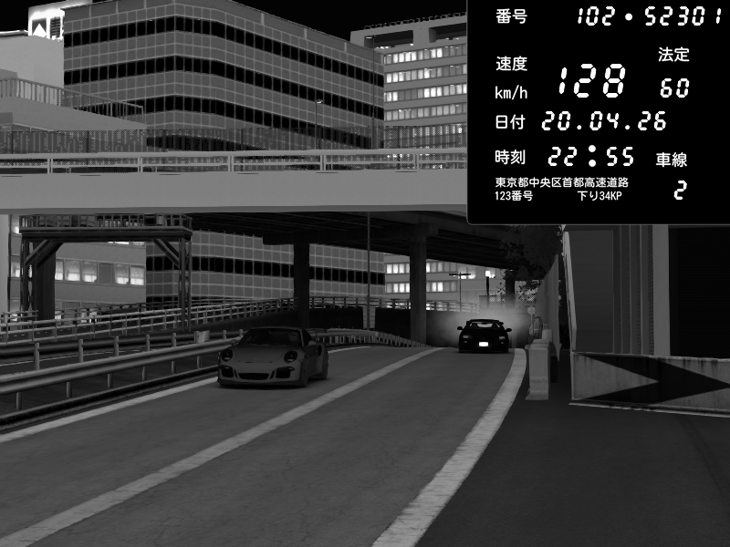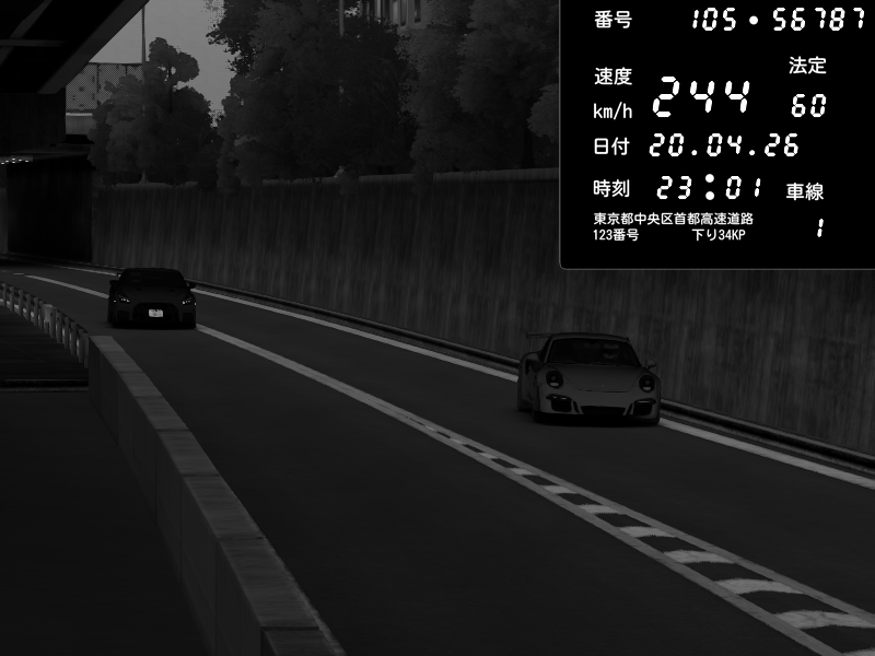 | 2026/04/20 22:55 | C1外回り 新富町 | 128 / 60 km/h | Porsche 911 GT3 RS | CAPTURE |