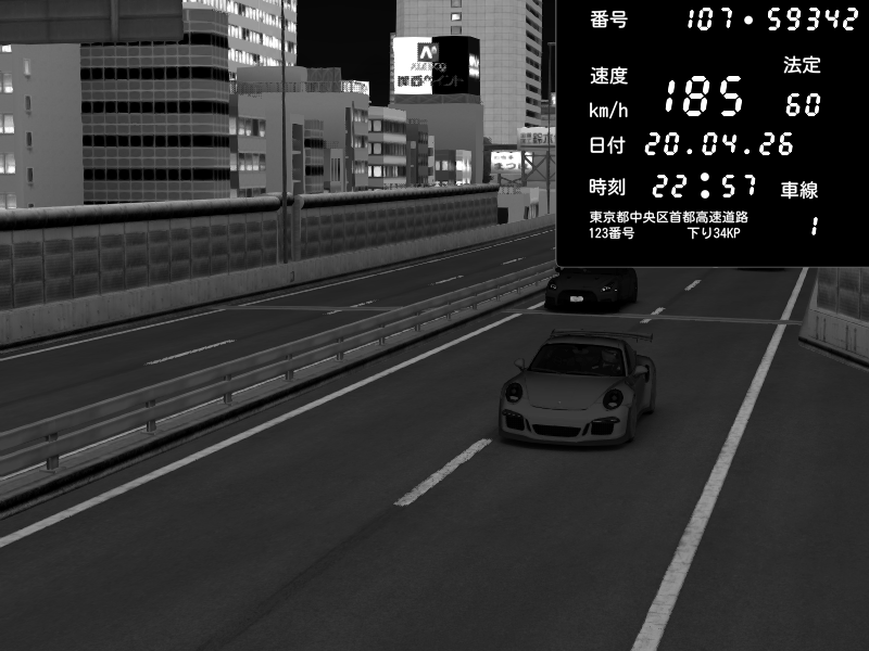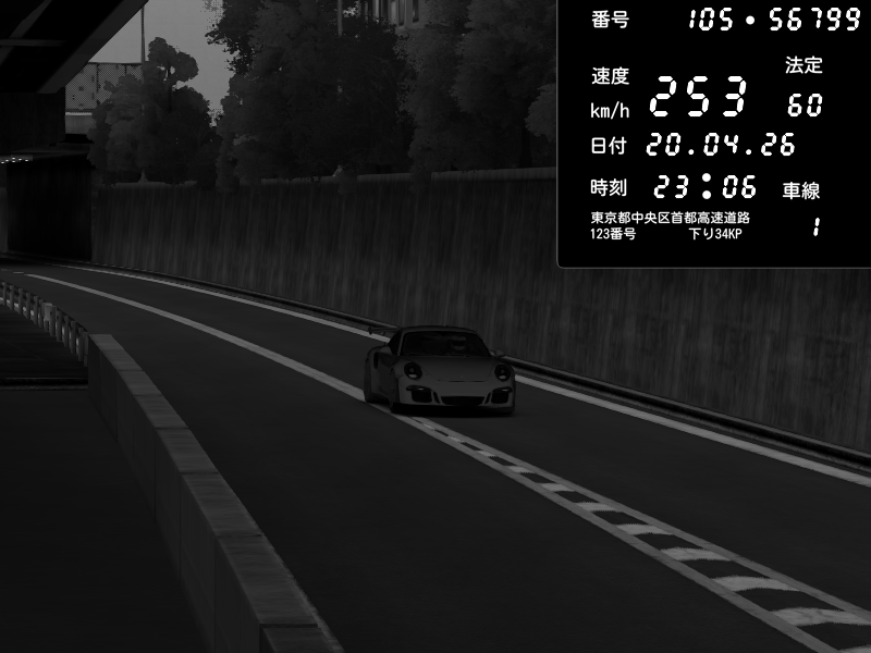 | 2026/04/20 23:06 | C1外回り 京橋 | 253 / 60 km/h | Porsche 911 GT3 RS | CAPTURE |