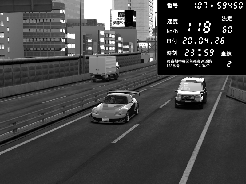 | 2026/04/20 23:59 | C1外回り 芝公園 | 118 / 60 km/h | Honda S2000 Turbo GT1 Amuse (AP1) | CAPTURE |