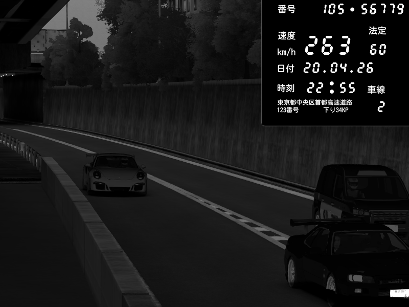 | 2026/04/20 22:55 | C1外回り 京橋 | 263 / 60 km/h | Porsche 911 GT3 RS | CAPTURE |