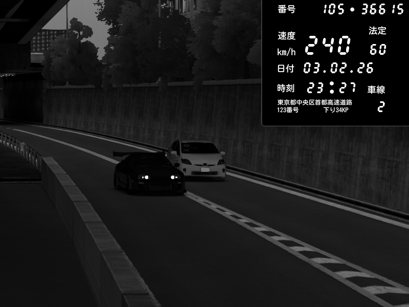 | 2026/02/03 23:27 | C1外回り 京橋 | 240 / 60 km/h | Toyota Supra MKIV Time Attack | CAPTURE |