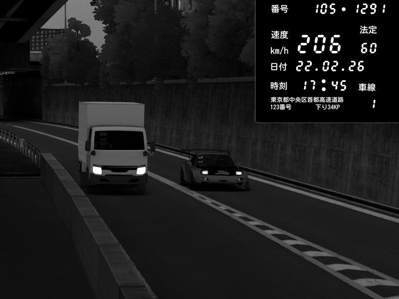 | 2026/02/22 17:45 | C1外回り 京橋 | 206 / 60 km/h | Mazda RX-7 FD3S FEED Afflux GT3 | CAPTURE |