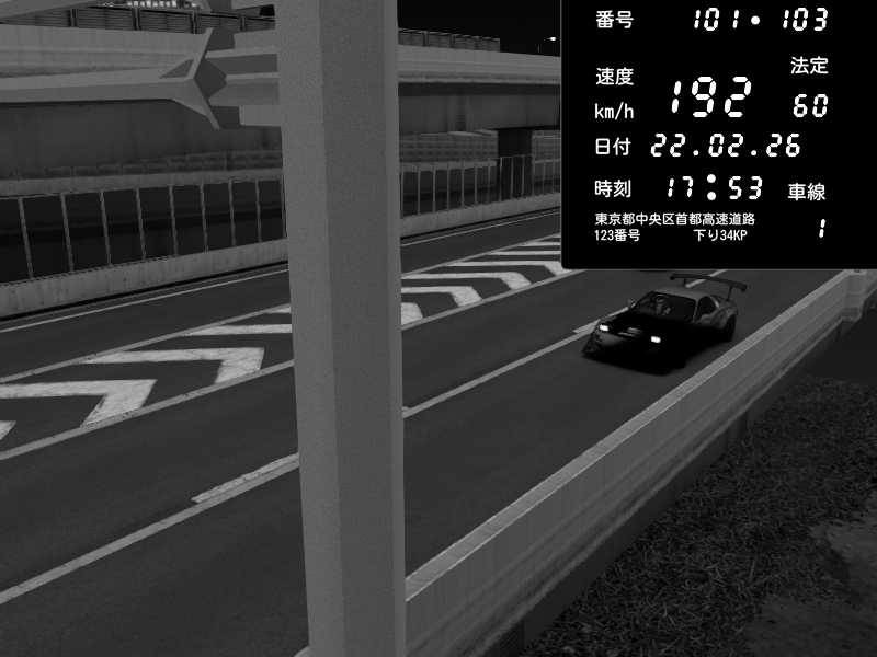| 2026/02/22 17:53 | C1内回り 竹橋JCT | 192 / 60 km/h | Mazda RX-7 FD3S FEED Afflux GT3 | CAPTURE |