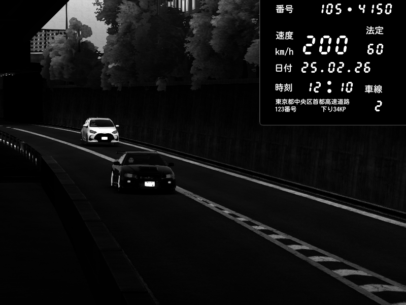| 2026/02/25 12:10 | C1外回り 京橋 | 200 / 60 km/h | Nissan Skyline GT-R R34 Nismo Omori Factory S1 | CAPTURE |