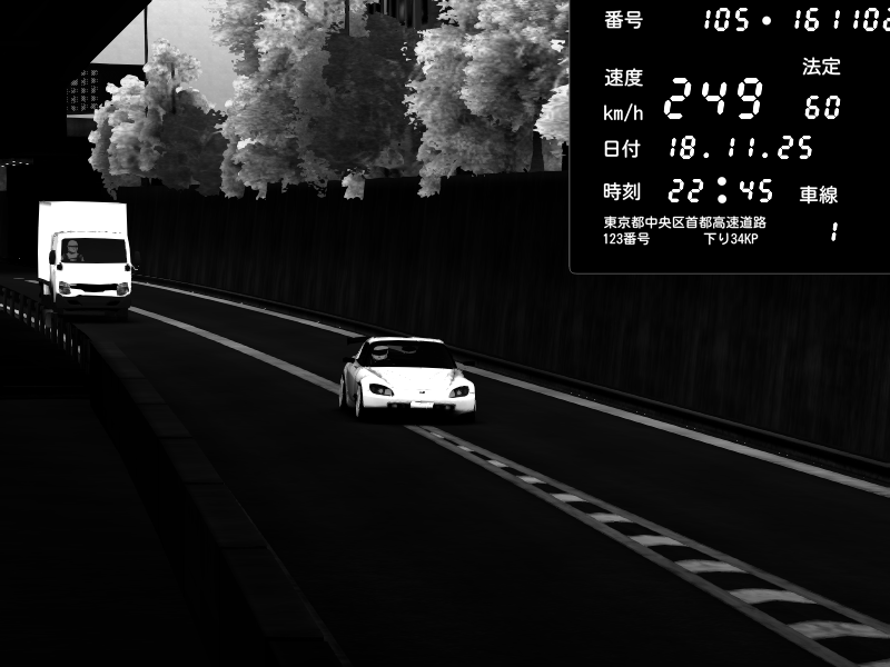 | 2025/11/18 22:45 | C1外回り 京橋 | 249 / 60 km/h | Honda S2000 (AP2 - Legendary) | CAPTURE |