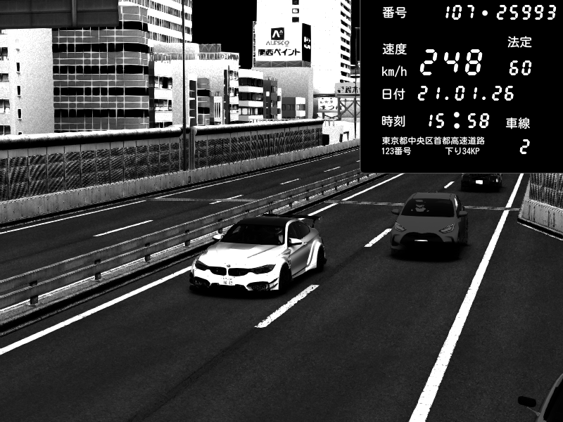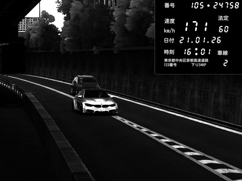 | 2026/01/21 15:56 | C1外回り 京橋 | 112 / 60 km/h | BMW M4 crash.Sp Varis Widebody | CAPTURE |