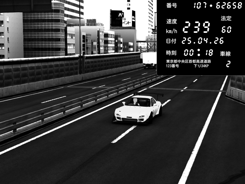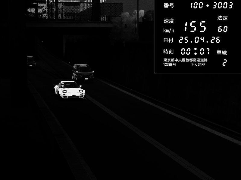 | 2026/04/25 00:08 | C1内回り 竹橋JCT | 116 / 60 km/h | Mazda RX-7 FD3S FEED Afflux GT3 | CAPTURE |