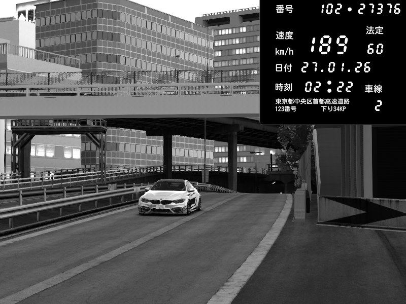 | 2026/01/27 02:26 | C1外回り 新富町 | 202 / 60 km/h | BMW M4 crash.Sp Varis Widebody | CAPTURE |