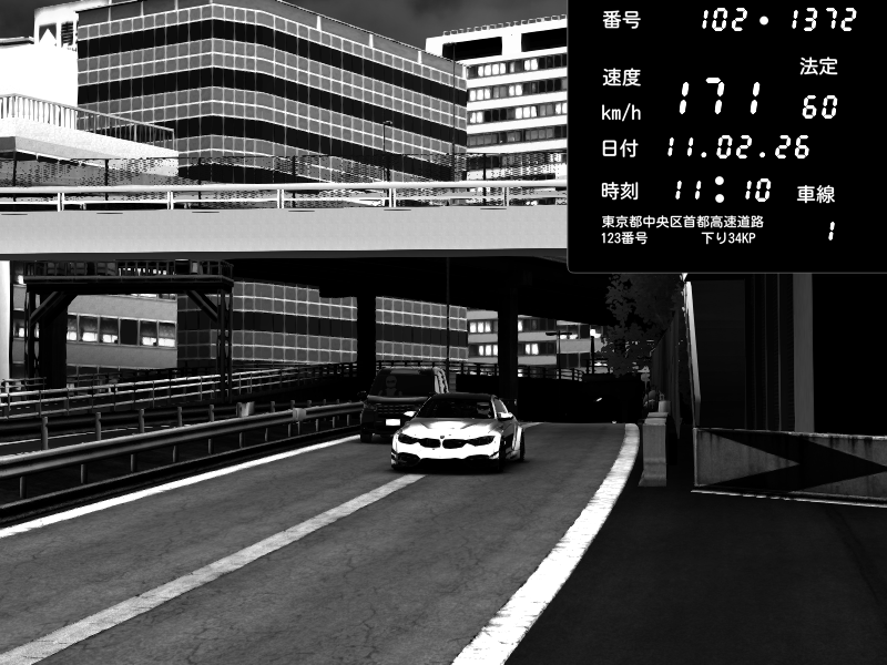 | 2026/02/11 11:10 | C1外回り 新富町 | 171 / 60 km/h | BMW M4 crash.Sp Varis Widebody | CAPTURE |