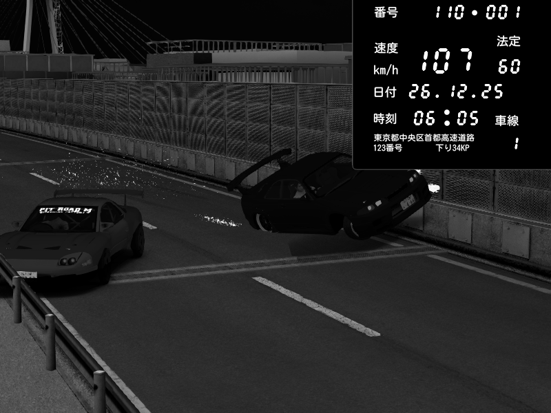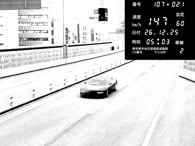 | 2025/12/26 04:53 | C1内回り 竹橋JCT | 126 / 60 km/h | Nissan Skyline GTR R33 (S3 - Wangan) | CAPTURE |