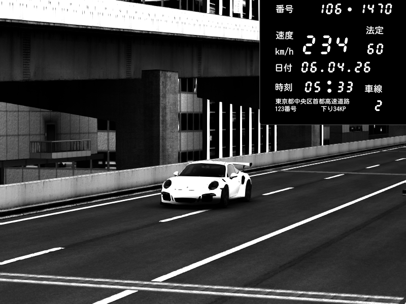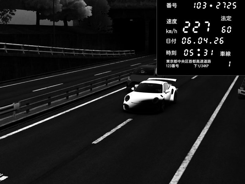 | 2026/04/06 05:31 | C1内回り 銀座 | 227 / 60 km/h | Porsche 911 GT3 RS | CAPTURE |