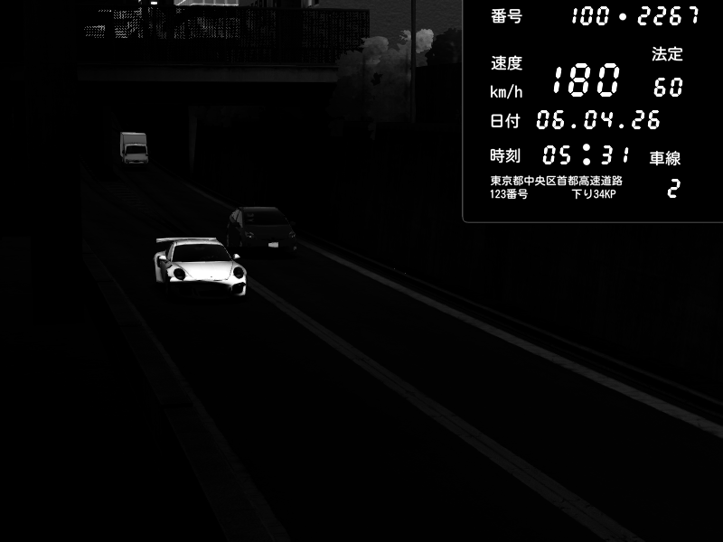 | 2026/04/06 05:31 | C1内回り 京橋 | 180 / 60 km/h | Porsche 911 GT3 RS | CAPTURE |