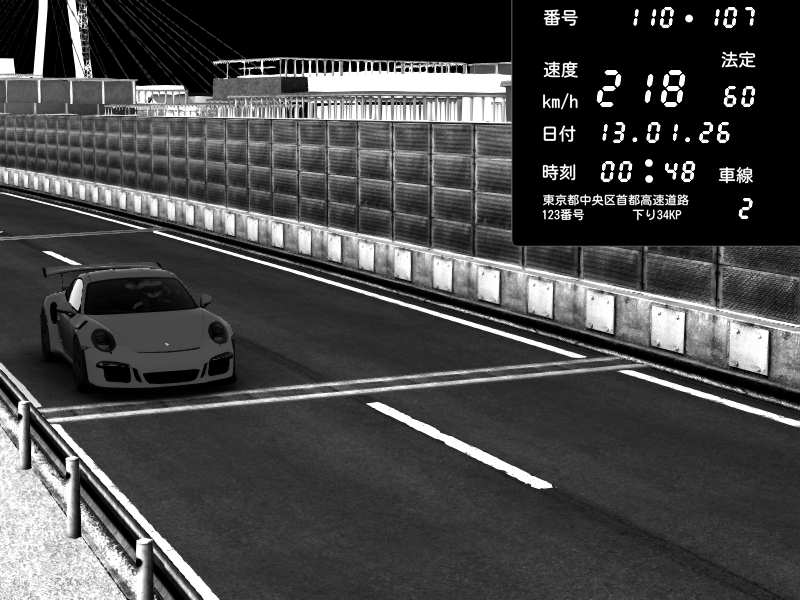 | 2026/01/13 00:48 | K1上り 羽田 | 218 / 60 km/h | Porsche 911 GT3 RS | CAPTURE |