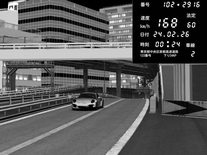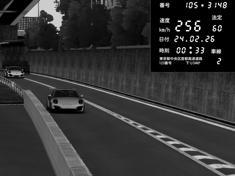| 2026/02/24 00:33 | C1外回り 京橋 | 256 / 60 km/h | Porsche 911 GT3 RS | CAPTURE |