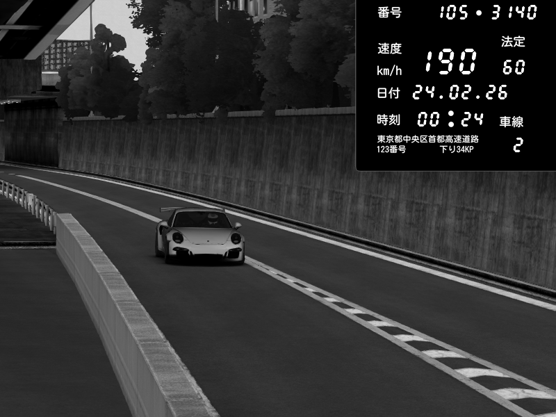 | 2026/02/24 00:24 | C1外回り 京橋 | 190 / 60 km/h | Porsche 911 GT3 RS | CAPTURE |