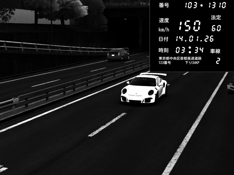 | 2026/01/14 03:34 | C1内回り 銀座 | 150 / 60 km/h | Porsche 911 GT3 RS | CAPTURE |