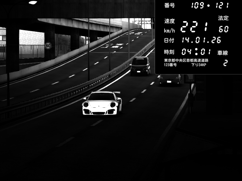 | 2026/01/14 03:36 | C1内回り 京橋 | 138 / 60 km/h | Porsche 911 GT3 RS | CAPTURE |