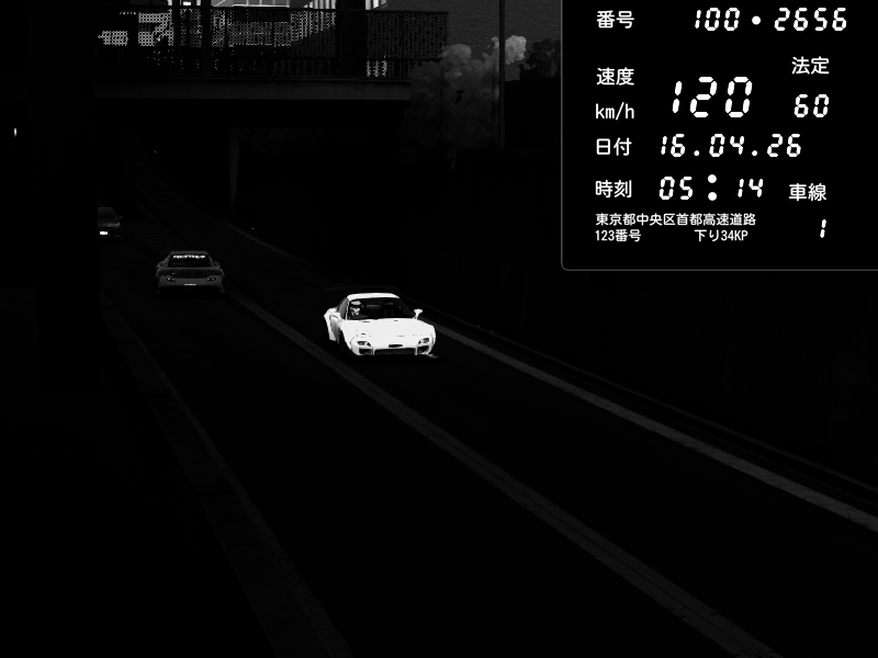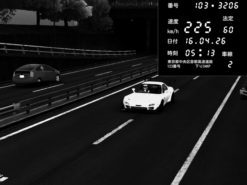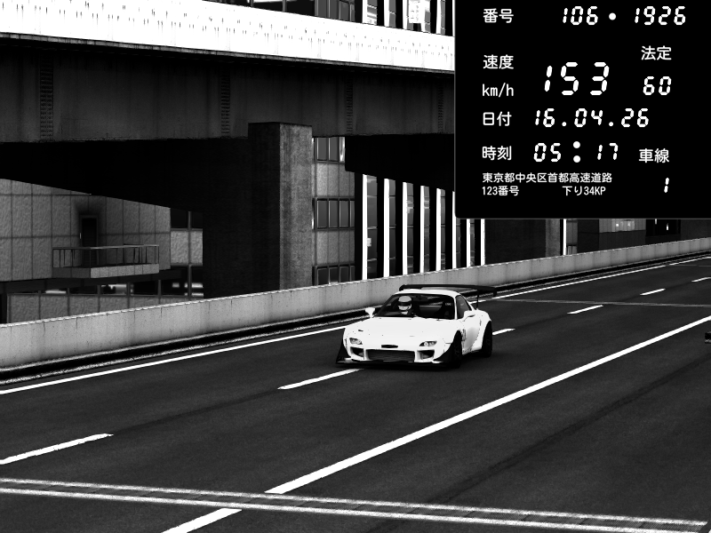 | 2026/04/16 05:13 | C1内回り 銀座 | 225 / 60 km/h | Mazda RX-7 FD3S FEED Afflux GT3 | CAPTURE |