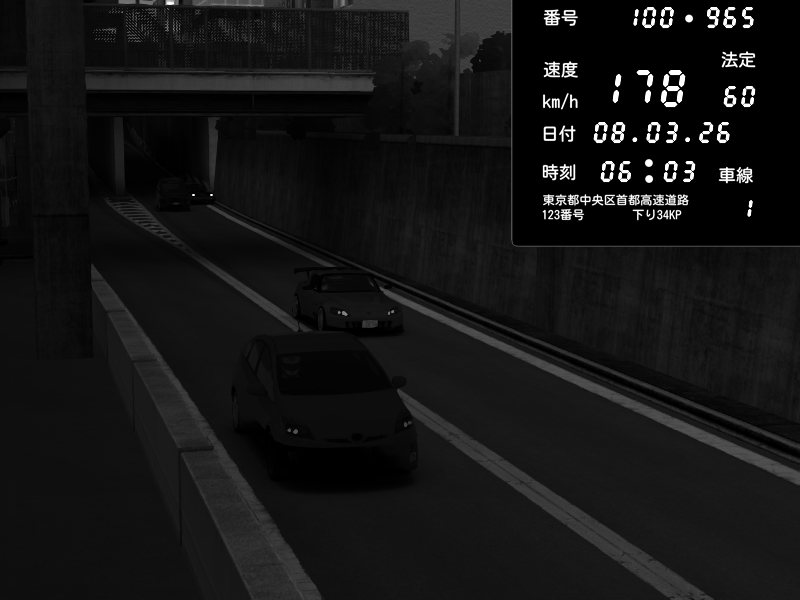 | 2026/03/08 06:03 | C1内回り 京橋 | 178 / 60 km/h | Honda S2000 (AP2 - Legendary) | CAPTURE |