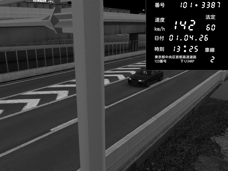 | 2026/04/01 13:25 | C1内回り 竹橋JCT | 142 / 60 km/h | Mitsubishi Lancer Evolution V Wangan Spec | CAPTURE |