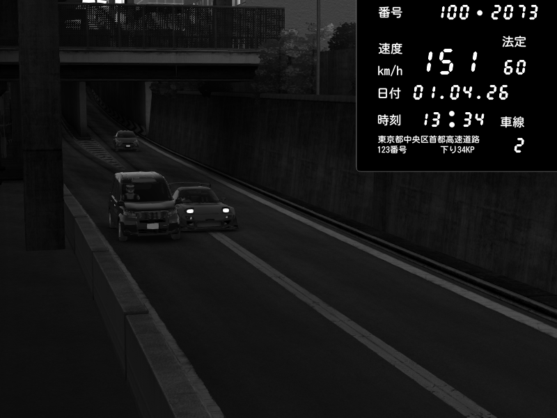 | 2026/04/01 13:20 | C1外回り 京橋 | 168 / 60 km/h | Mitsubishi Lancer Evolution V Wangan Spec | CAPTURE |