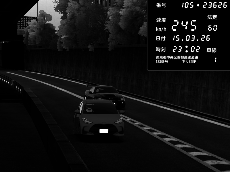 | 2026/03/15 23:06 | C1外回り 新富町 | 115 / 60 km/h | Nissan Skyline GT-R R34 Nismo Omori Factory S1 | CAPTURE |