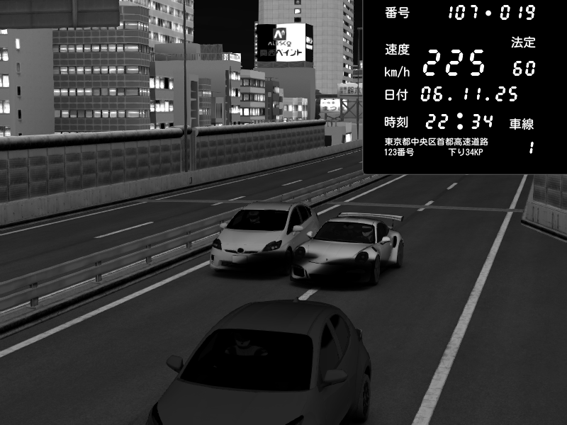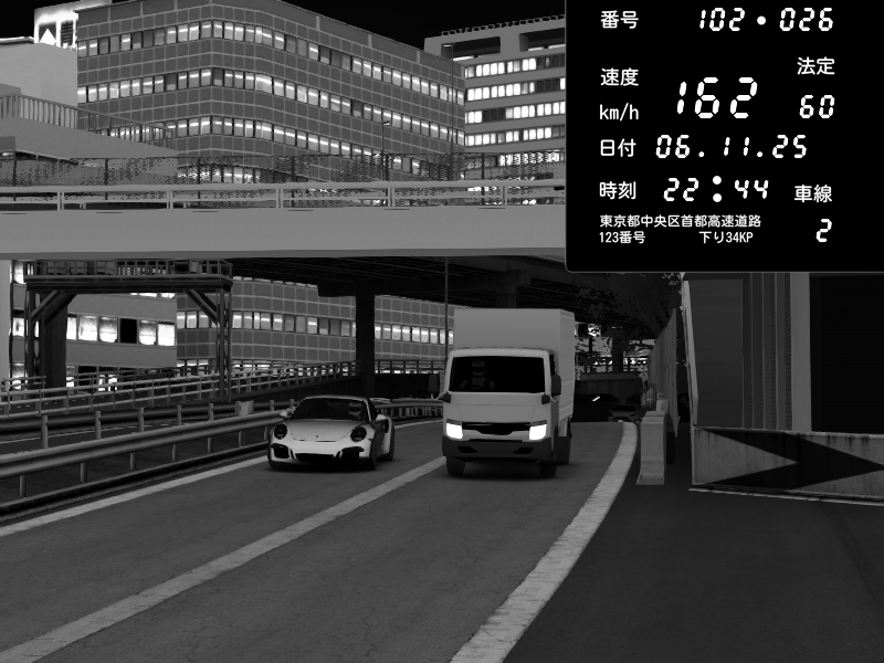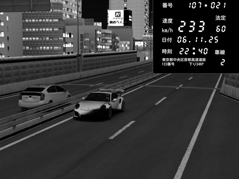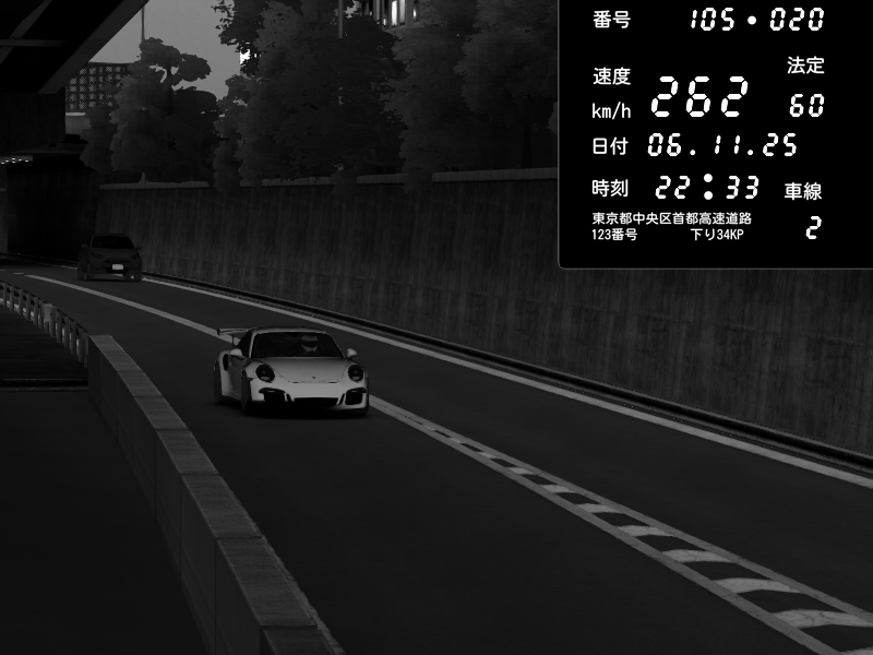 | 2025/11/06 22:33 | C1外回り 新富町 | 159 / 60 km/h | Porsche 911 GT3 RS | CAPTURE |