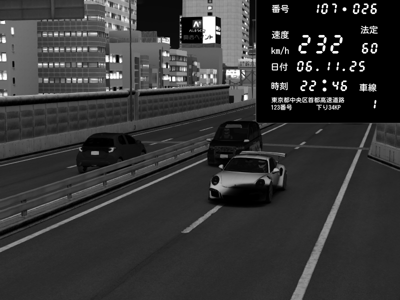 | 2025/11/06 22:46 | C1外回り 芝公園 | 232 / 60 km/h | Porsche 911 GT3 RS | CAPTURE |