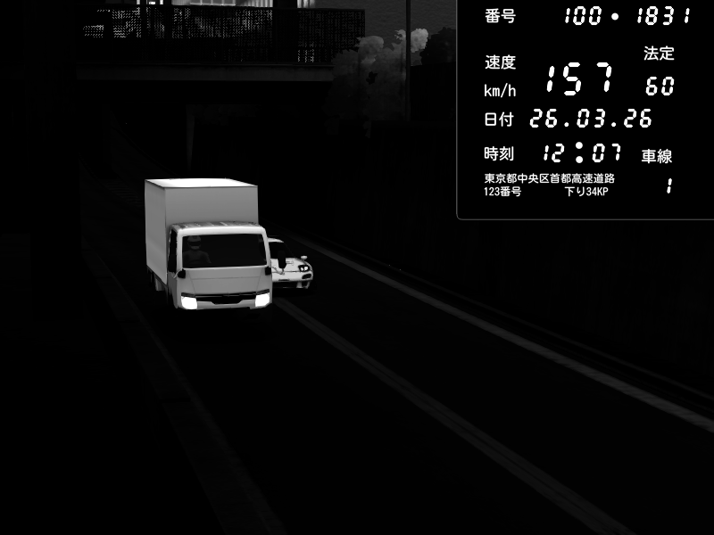 | 2026/03/26 11:35 | 4号下り 代々木 | 142 / 60 km/h | Mazda RX-7 FD3S FEED Afflux GT3 | CAPTURE |