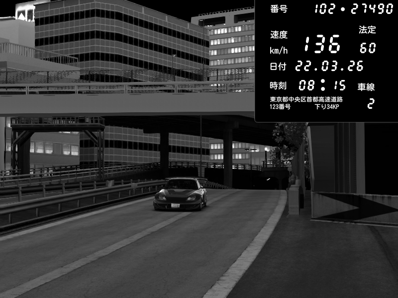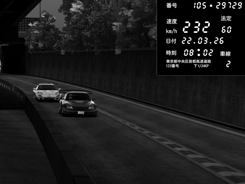 | 2026/03/22 08:02 | C1外回り 京橋 | 232 / 60 km/h | Honda S2000 Turbo GT1 Amuse (AP1) | CAPTURE |