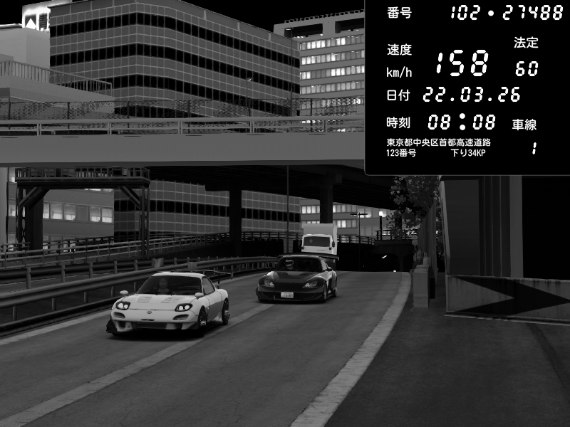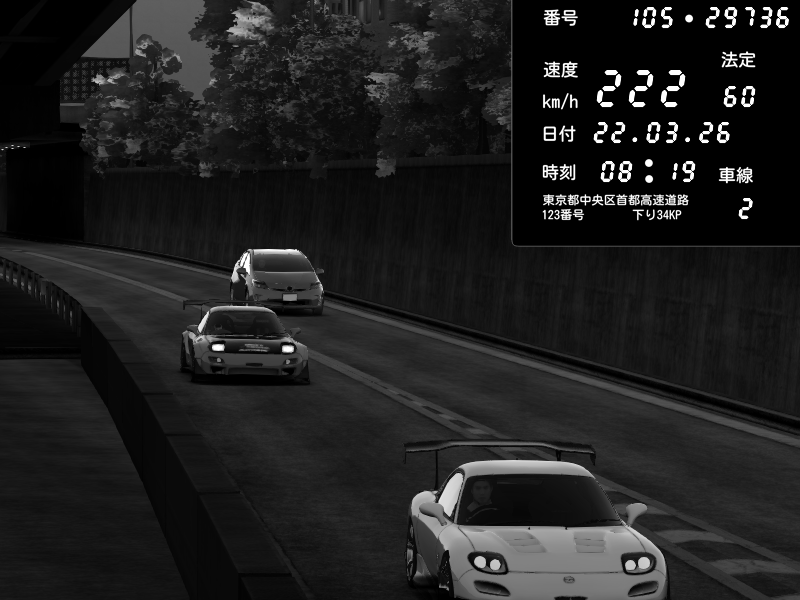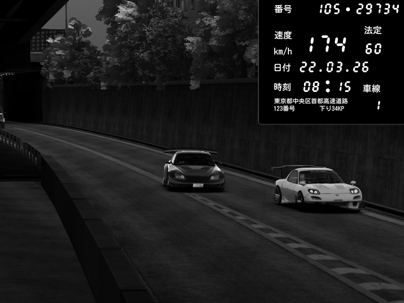| 2026/03/22 08:19 | C1外回り 京橋 | 222 / 60 km/h | Mazda RX-7 FD3S FEED Afflux GT3 | CAPTURE |