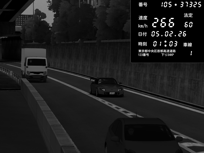 | 2026/02/05 01:03 | C1外回り 京橋 | 266 / 60 km/h | Honda S2000 (AP2 - Legendary) | CAPTURE |