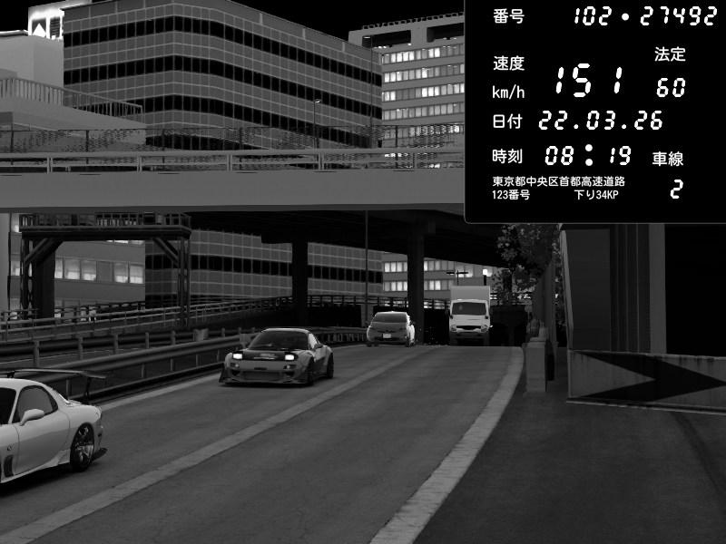 | 2026/03/22 08:19 | C1外回り 新富町 | 151 / 60 km/h | Mazda RX-7 FD3S FEED Afflux GT3 | CAPTURE |