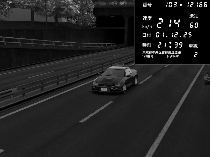 | 2025/12/01 21:39 | C1内回り 銀座 | 214 / 60 km/h | Nissan Skyline GT-R R34 Nismo Omori Factory S1 | CAPTURE |