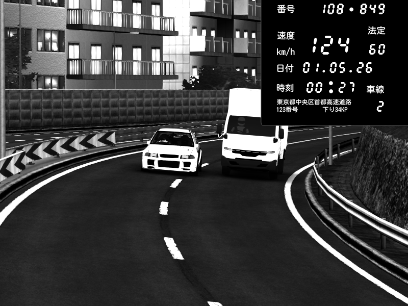 | 2026/05/01 00:47 | C1内回り 銀座 | 163 / 60 km/h | Mitsubishi Lancer Evolution V Wangan Spec | CAPTURE |