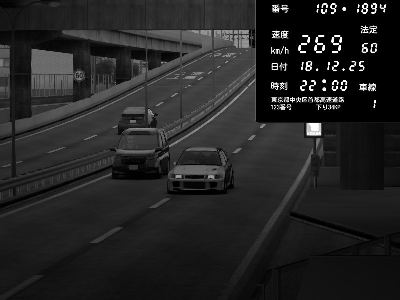 | 2025/12/18 22:00 | K1上り 子安 | 269 / 60 km/h | Mitsubishi Lancer Evolution V Wangan Spec | CAPTURE |