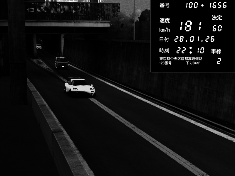 | 2026/01/28 22:10 | C1内回り 京橋 | 181 / 60 km/h | Mazda RX-7 FD3S RE Amemiya | CAPTURE |