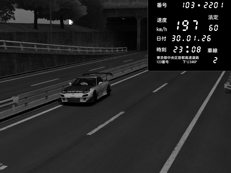 | 2026/01/30 23:08 | C1内回り 銀座 | 197 / 60 km/h | Mazda RX-7 FD3S RE Amemiya | CAPTURE |