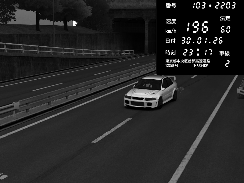 | 2026/01/30 23:17 | C1内回り 銀座 | 196 / 60 km/h | Mitsubishi Lancer Evolution V Wangan Spec | CAPTURE |