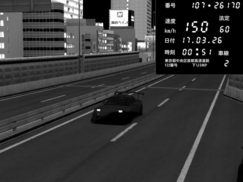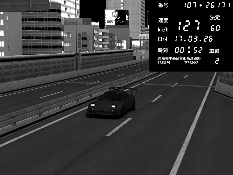 | 2026/01/08 17:32 | C1内回り 竹橋JCT | 171 / 60 km/h | Mazda RX-7 FD3S RE Amemiya | CAPTURE |
